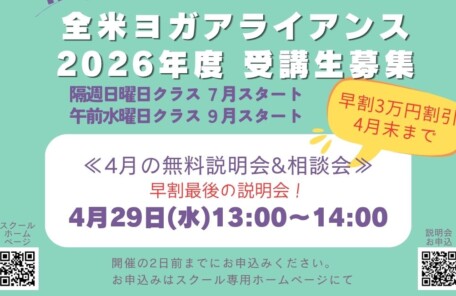 RYS200・2026年度生募集開始!7月隔週日曜午後クラス・9月毎週午前水…