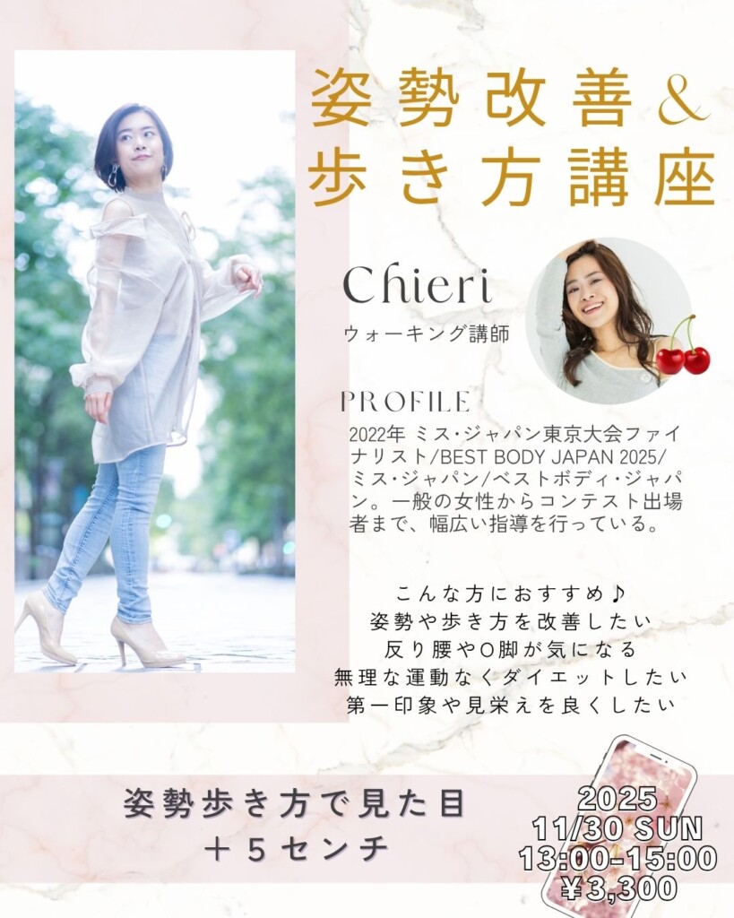 2023年「Cherry Walking」を開校。現在は、東京と神奈川を中心にパーソナルレッスンやグループレッスンをメインに開催。企業研修や団体レッスンの講師としても活動中。