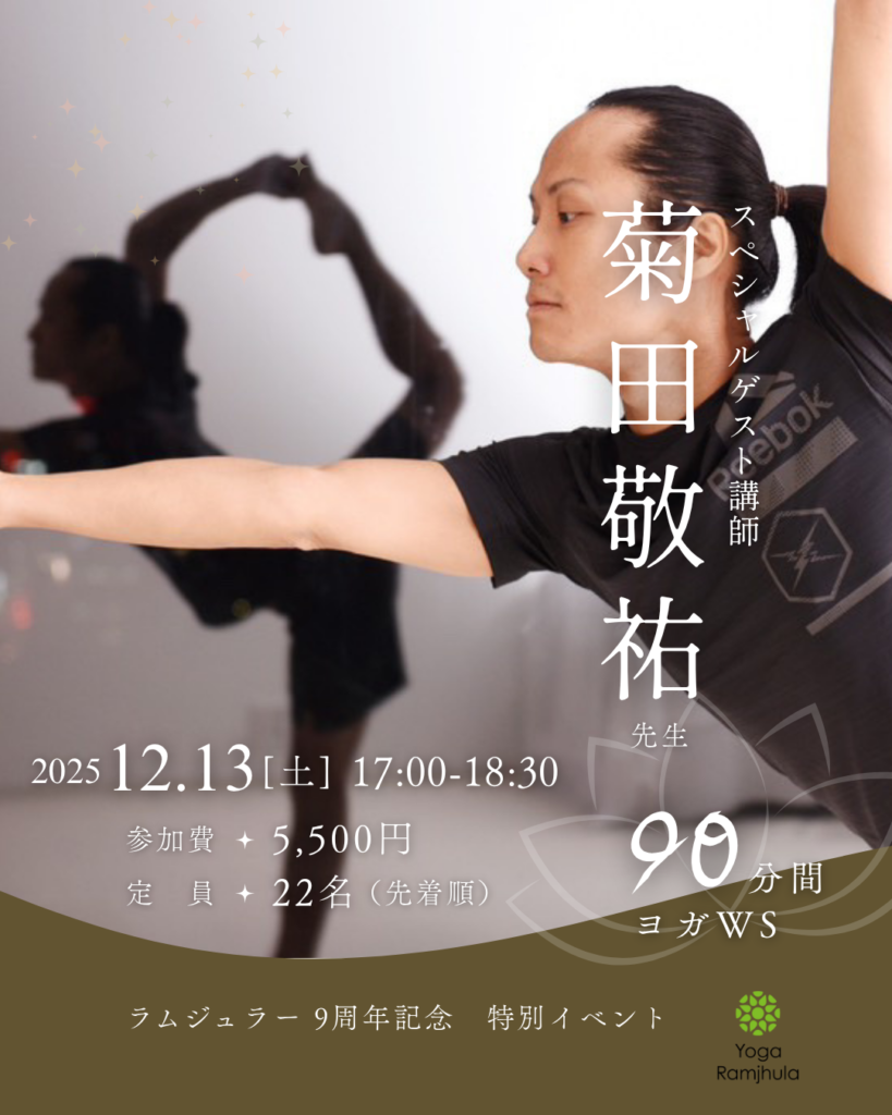 12/13(土)9周年イベント 菊田敬祐先生90分ヨガWS