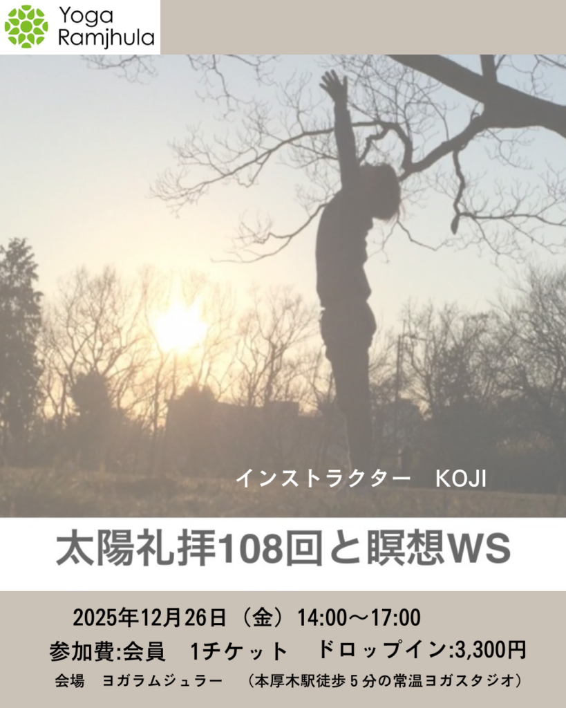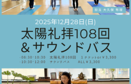 年末のご自身の身体とマインドの大掃除として太陽礼拝108回の練習をしましょう!初めての方も大歓迎です!