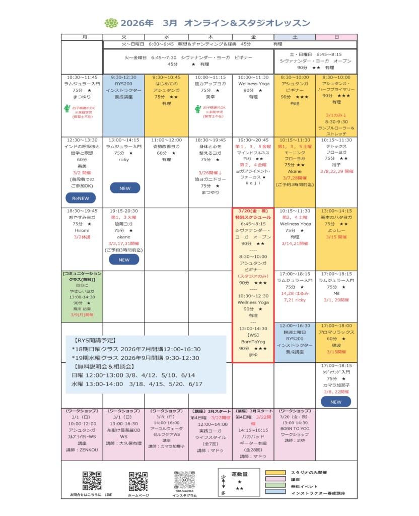 早朝ヨガのご予約は前日の21時迄にお願い致します。早朝の瞑想とシヴァナンダヨガはスタジオもZOOMもご予約のご協力お願いいたします。