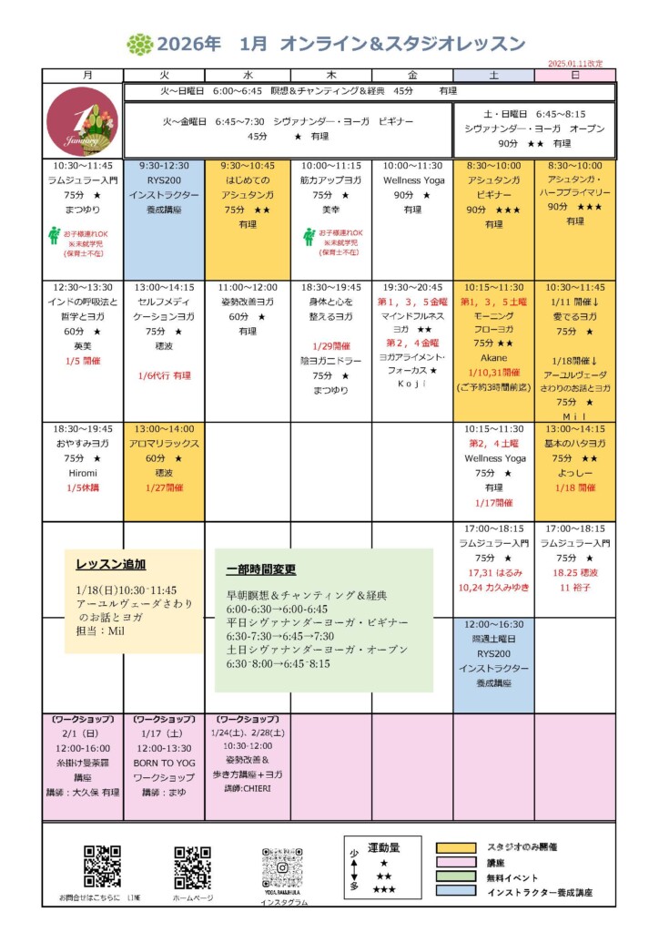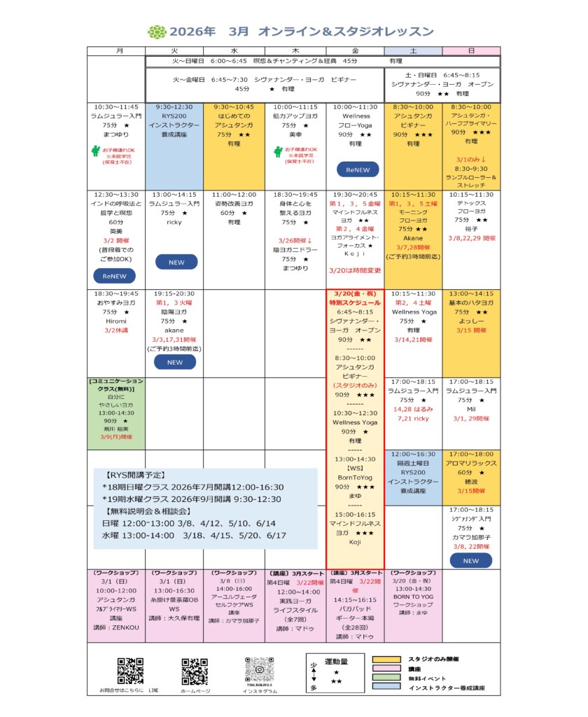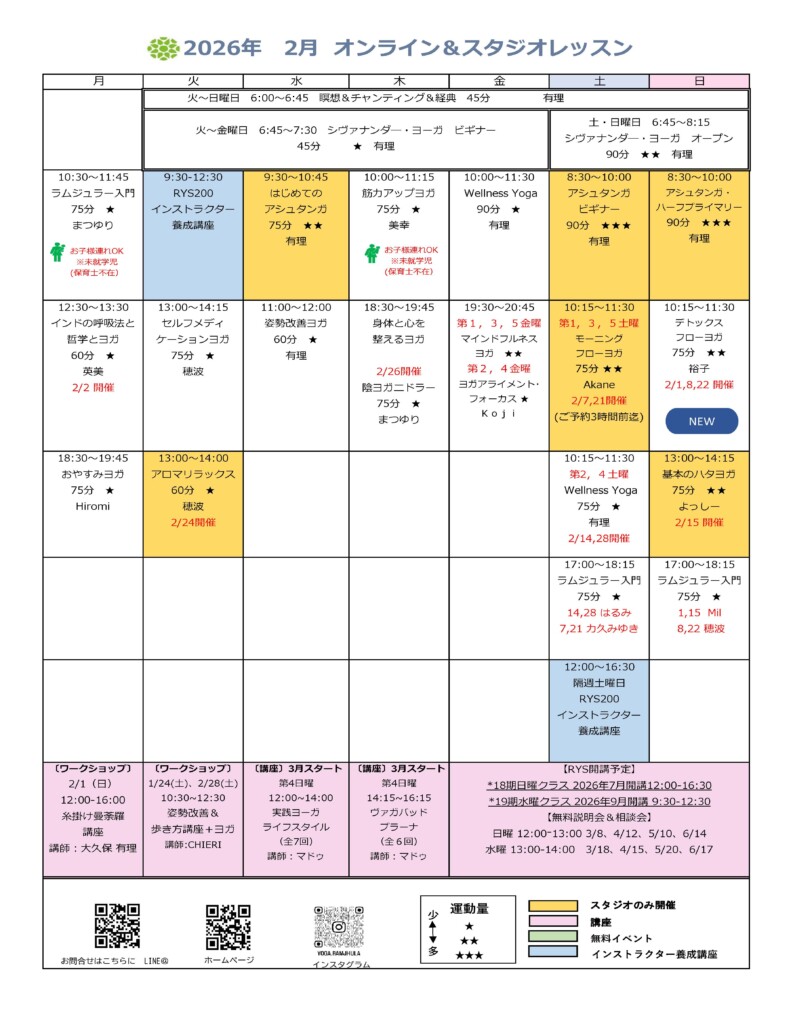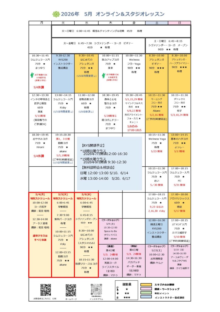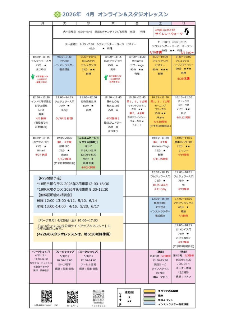 早朝ヨガのご予約は前日の21時迄にお願い致します。早朝の瞑想とシヴァナンダヨガはスタジオもZOOMもご予約のご協力お願いいたします。